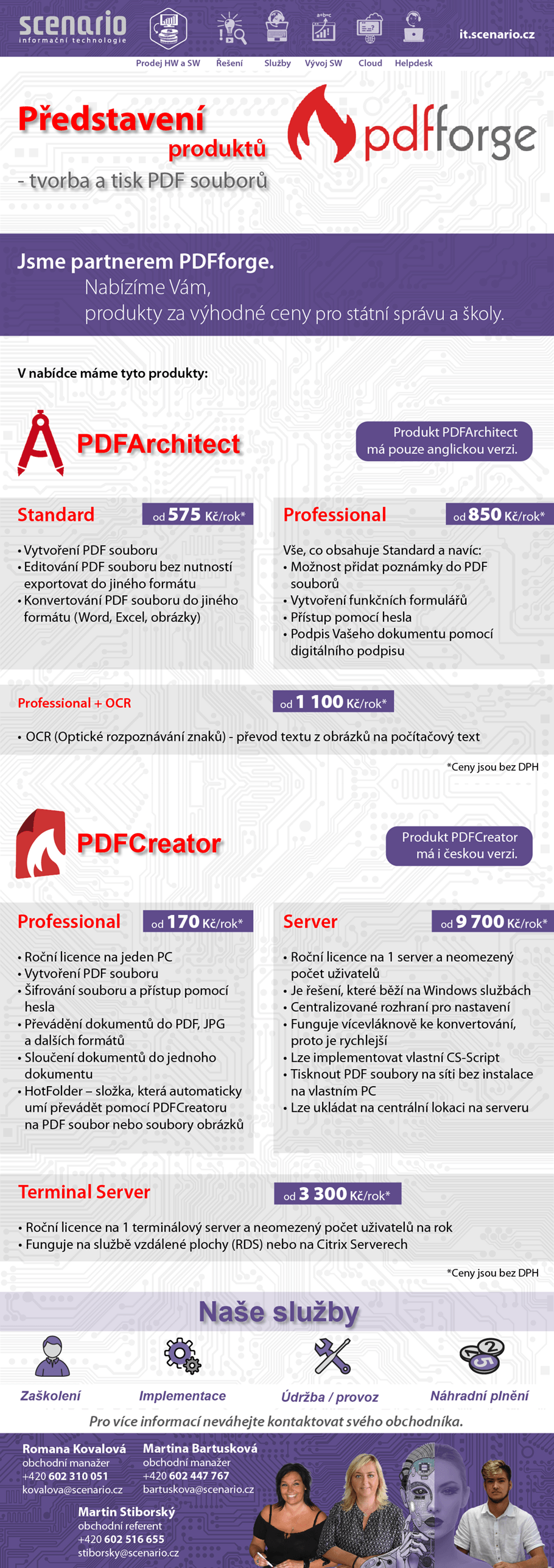 Objevte výkonné nástroje pro tvorbu, úpravu a konverzi PDF souborů. PDF Architect a PDFCreator od společnosti PDFforge nabízí flexibilní řešení pro školy, úřady i firmy. K dispozici jsou české i anglické verze, roční licence a zvýhodněné ceny. Kontaktujte nás pro více informací nebo implementaci.