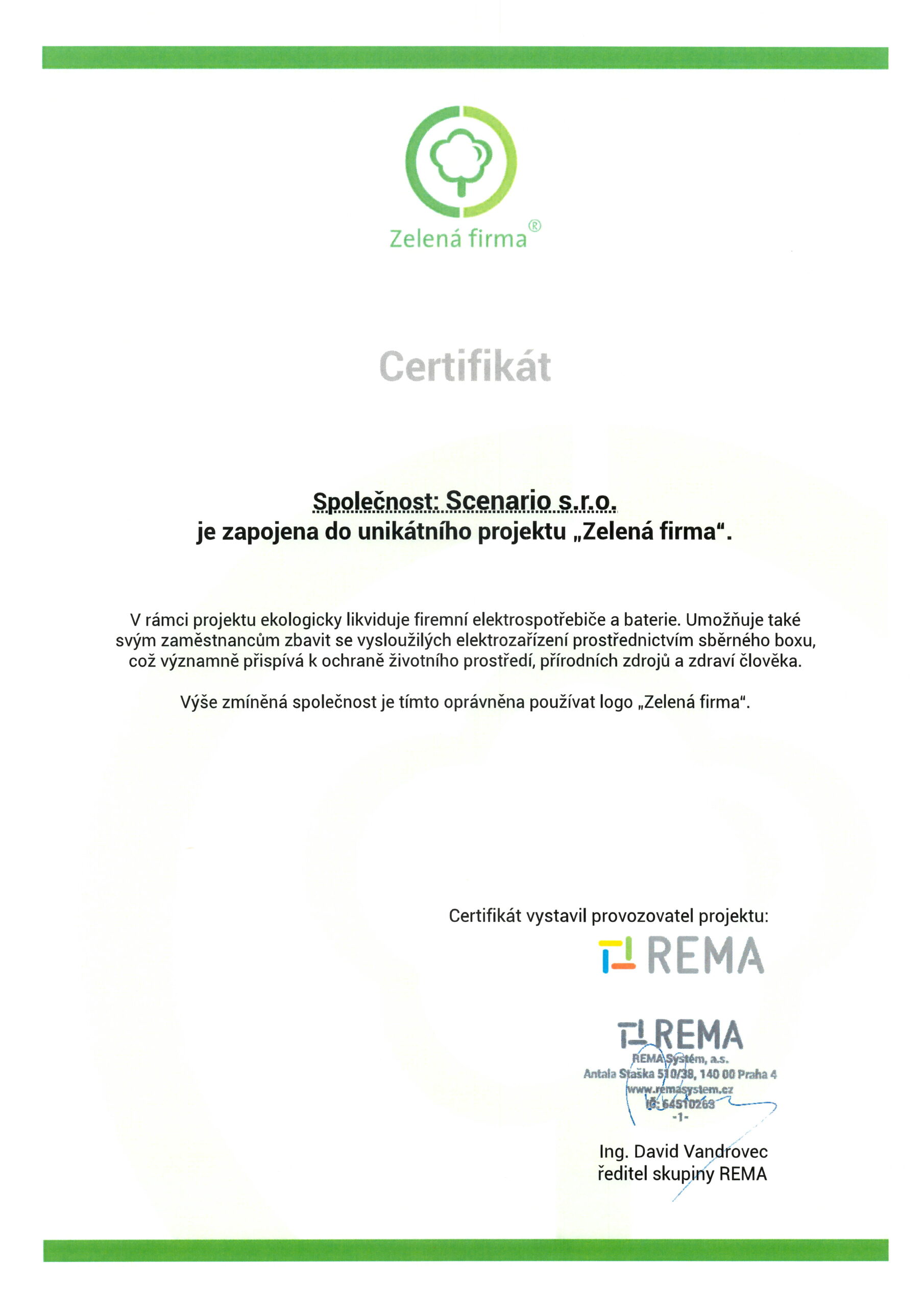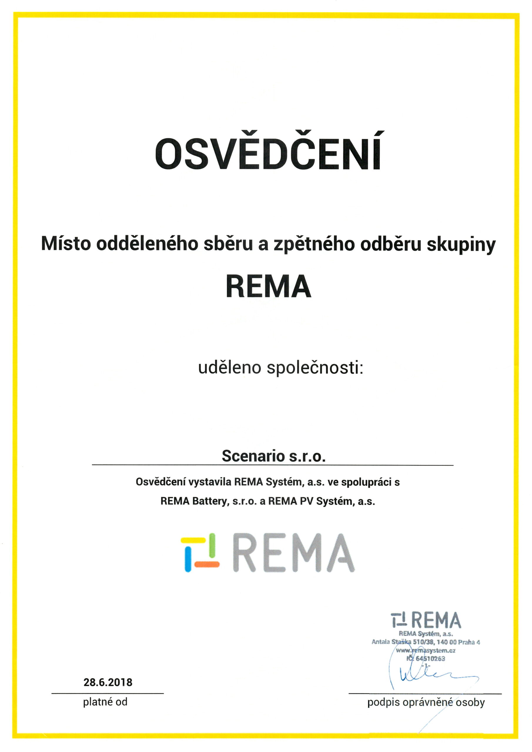 Naše společnost je zapojena do systému ekologického nakládání s elekroodpadem REMA.
